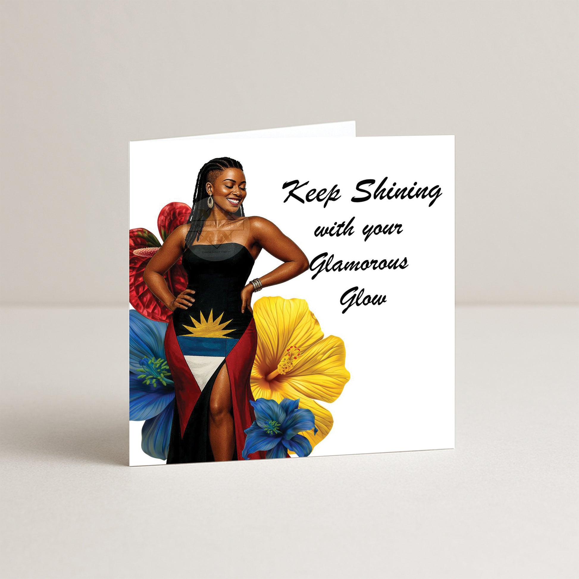 A striking Afrocentric birthday card that honours Antiguan beauty, confidence, and the joyful glow of island womanhood.
