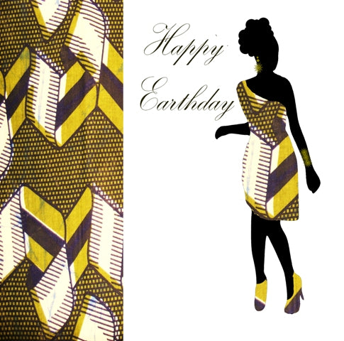 The “Earthday Empress” card by Nsaa Nefateri honours the beauty and power of the African-Caribbean woman who walks with grace and confidence. Dressed in a chic one-shoulder gown adorned with bold African print patterns in golden yellow and deep violet, she stands as a symbol of strength, elegance, and divine femininity.