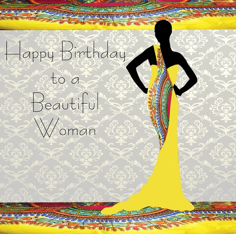 The Candace birthday card by Nsaa Nefateri captures the beauty and brilliance of a woman who shines from within. Draped in a vibrant yellow gown with intricate African print detailing, this striking silhouette reflects warmth, joy, and cultural pride — a true celebration of Black womanhood.