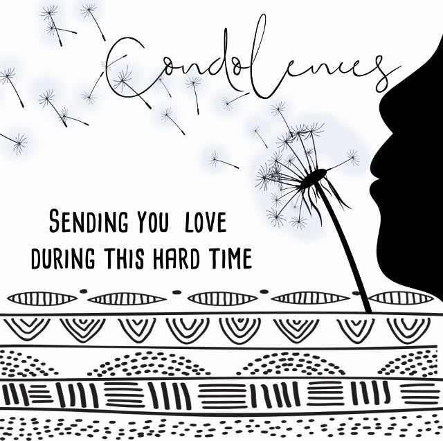 This elegant Afrocentric sympathy card by Nsaa Nefateri carries a quiet strength. A delicate dandelion releases its seeds into the air — a soft symbol of release, remembrance and the unseen connection that never truly leaves us. The silhouette of a profile adds a reflective stillness, honouring the private moments of grief we all hold.